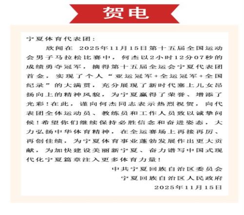从宁夏回族自治区党委、政府“单独”给他发的贺电,就可以看出他此次斩获男子马拉松冠军之于宁夏的意义。