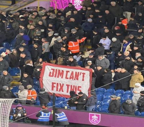 红魔拥趸也表达了对老板吉姆·拉特克里夫爵士的不满,看台上有一条横幅,上面写着:拉爵搞不定(Jim can’t fix this)。
