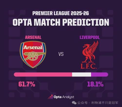 权威数据机构OPTA对本场结果的预测是阿森纳胜率超六成(61.7%),利物浦胜率不足两成(18.1%)。