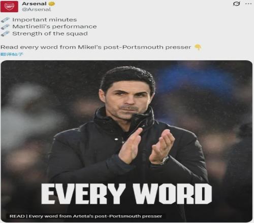 阿尔特塔出席了赛后新闻发布会,我们来看看阿森纳主帅的发言。