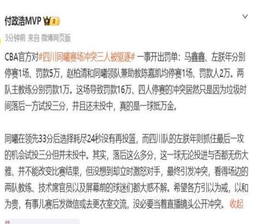 4人禁赛罚16万!CBA赛季最重罚单,四川遭晴天霹雳,球迷:至于吗