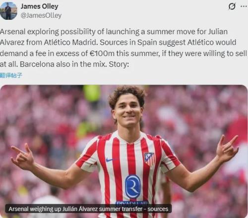 跟队:阿森纳探索夏天收购阿尔瓦雷斯!枪手两大将伤愈复出! -